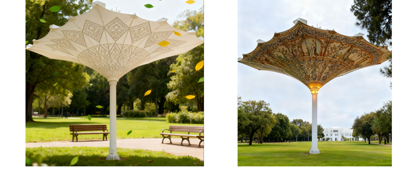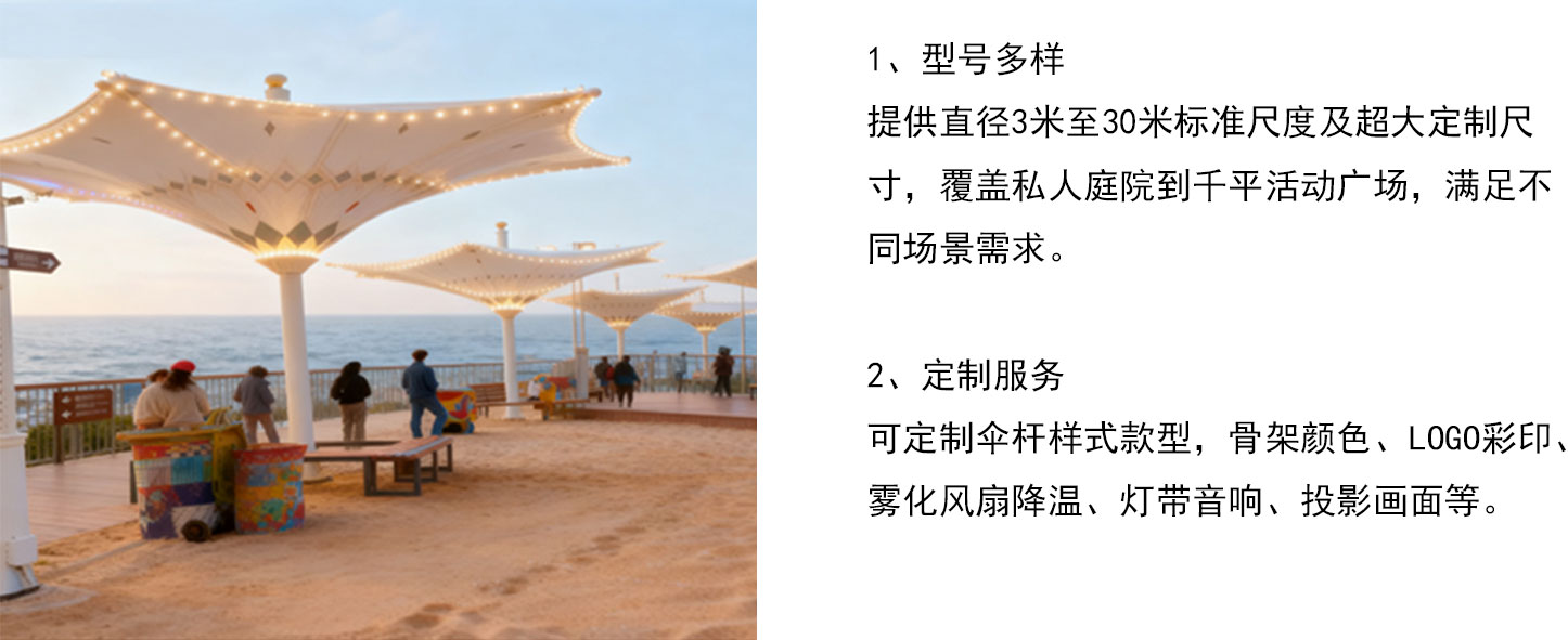 根据空间利用可选择圆伞或方伞。