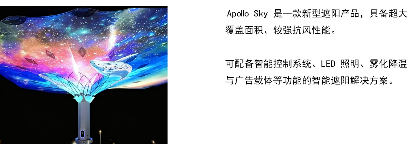阿波罗天际Aopllo Sky™智能遮阳伞 德国SL-Rasch遮阳伞 德国SL-Rasch U53遮阳伞 智能折叠遮阳伞 膜结构遮阳伞 智能景观遮阳伞 户外景观伞 电动折叠伞 定制膜材遮阳伞 巨型伞 巨型遮阳伞 膜结构电动伞 沙特遮阳伞 大型遮阳伞 户外折叠伞